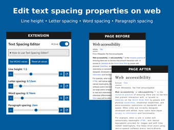 Text Spacing Editor är en praktisk webbläsartillägg för Firefox som erbjuder användare möjligheten att anpassa textavstånd på webbsidor. Med stöd för linjehöjd, bokstavsavstånd, ordavstånd och styckeavstånd kan användare enkelt justera dessa parametrar för att förbättra läsbarheten. Tillägget är också ett verktyg för att testa WCAG:s framgångskriterium, vilket gör det till ett värdefullt hjälpmedel för webbutvecklare och användare med särskilda behov.